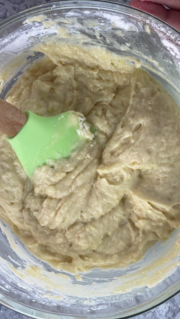 Du kannst Nüsse, Rosinen oder Schokoladensplitter zum Teig hinzufügen oder ihn mit einer Prise Puderzucker oder einem Hauch Honig servieren.
