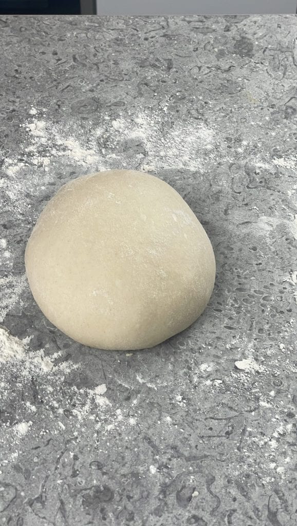 • Verlagere den Teig auf eine bemehlte Fläche, arbeite ihn noch mit den Händen für ein paar Minuten.