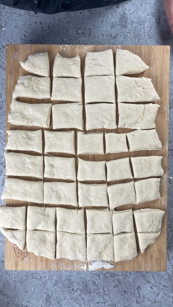 • Teile den Teig in Stücke von etwa 3-4 cm, Genauigkeit ist nicht erforderlich.