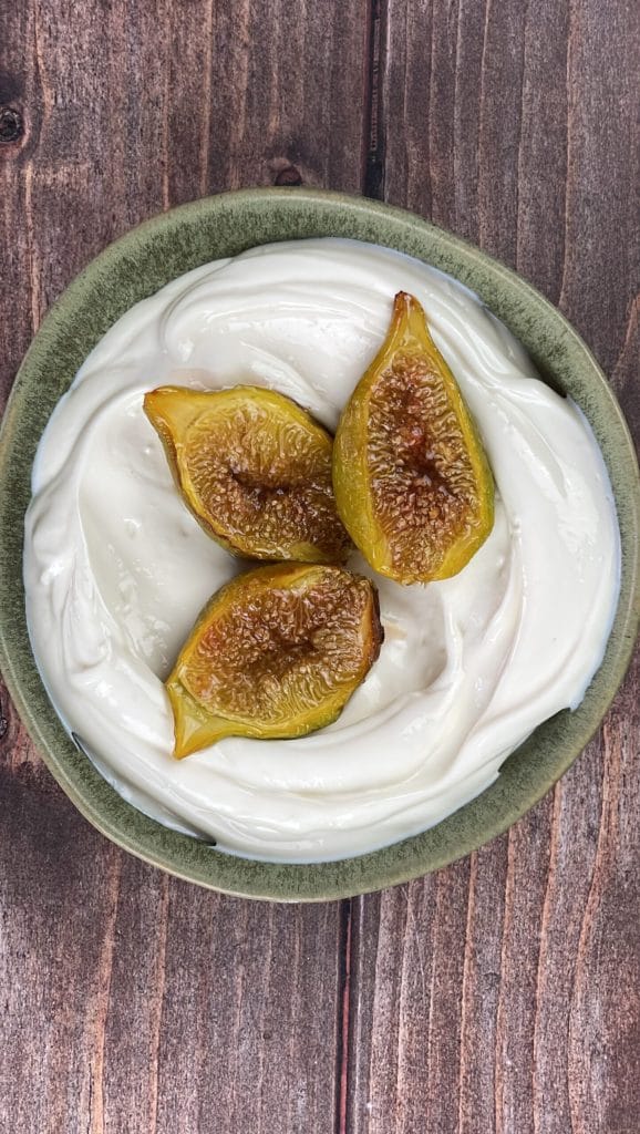 Die Basis ist eine Ricotta-Creme, die durch einen Hauch von Honig und Zitronensaft noch duftender wird und mit gehackten Pistazien für eine knusprige Note garniert ist. Die eigentlichen Protagonisten sind jedoch die Feigen: Ich karamellisiere sie in der Heißluftfritteuse mit Butter, Honig und Zitrone, um ihre natürliche Süße zu betonen, ohne sie zu beschweren. Alternativ kannst du sie auch im Ofen backen, wenn du es bevorzugst.