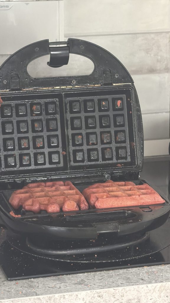 Backe die Red Velvet Waffeln für 3 Minuten.