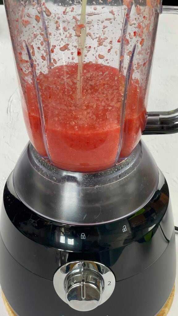 Füge den Zitronensaft hinzu und mixe noch einmal für eine Minute.