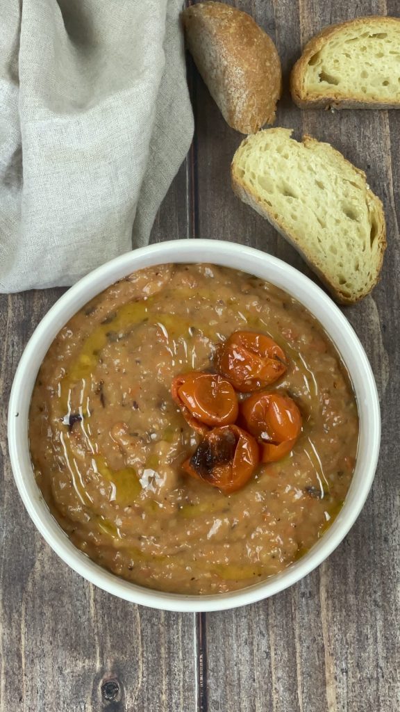 Das Rezept für diese Suppe ist sehr einfach und alles wird im Ofen zubereitet, wobei nur ein Blech schmutzig wird. Sie ist ideal, um alleine als Hauptgericht genossen zu werden oder als Sauce für Pasta, oder sie kann mit knusprigem Brot oder Grissini serviert werden.
