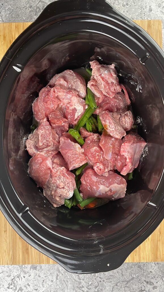 Geschmortes mit Karotten und grünen Bohnen im Slow Cooker, einfach, authentisch und voller Geschmack, perfekt für alle, die hausgemachte Küche lieben, aber wenig Zeit zum Kochen haben.