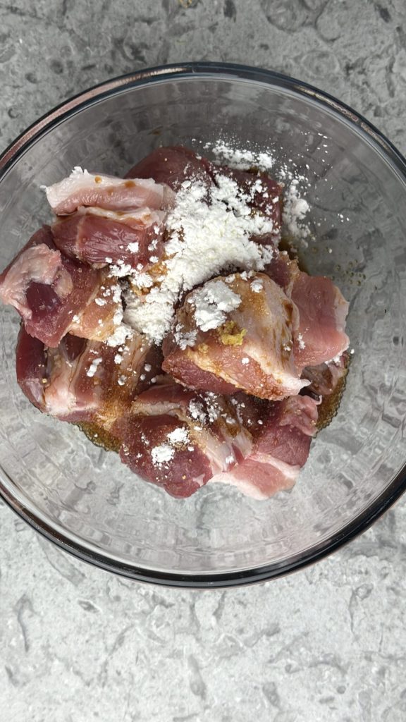 Alles gut vermischen, dann die Maisstärke dazugeben und nochmals umrühren, bis alle Zutaten gleichmäßig verteilt sind.