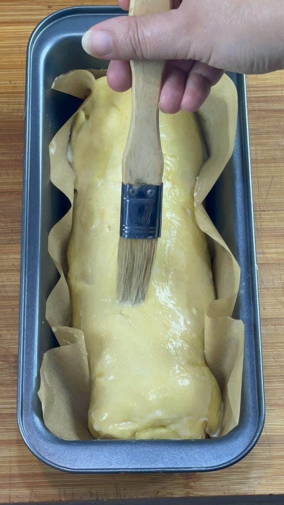 Lege sie in eine Kastenform und lasse sie noch 1 Stunde gehen.