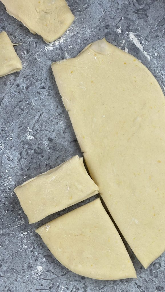 Teile ihn in 8-10 Portionen mit einem Messer oder einer Teigkarte.