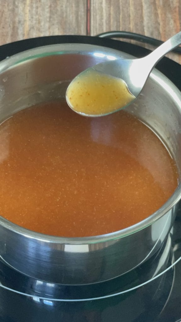 Die hausgemachte süßsaure Sauce ist fertig: überführe sie in ein Glas oder eine kleine Schüssel und verwende sie, um deine asiatisch inspirierten Gerichte und mehr zu würzen!