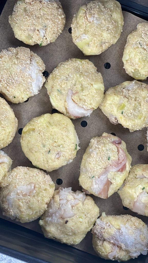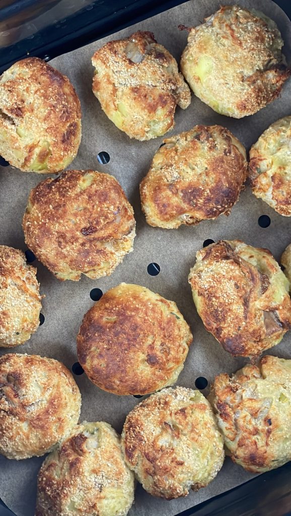 Kartoffel- und Kabeljaufrikadellen in der Heißluftfritteuse