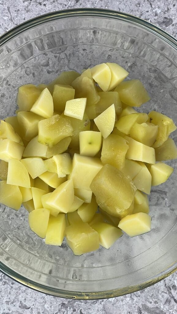 Beginne die Zubereitung der Kartoffel- und Kabeljaufrikadellen in der Heißluftfritteuse, indem du die Kartoffeln kochst.