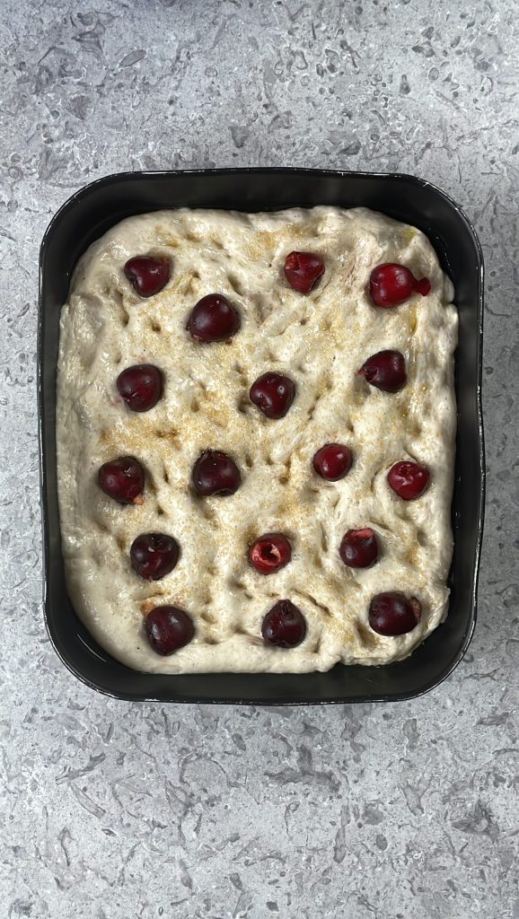Kirsch-Focaccia mit sehr weichem Teig