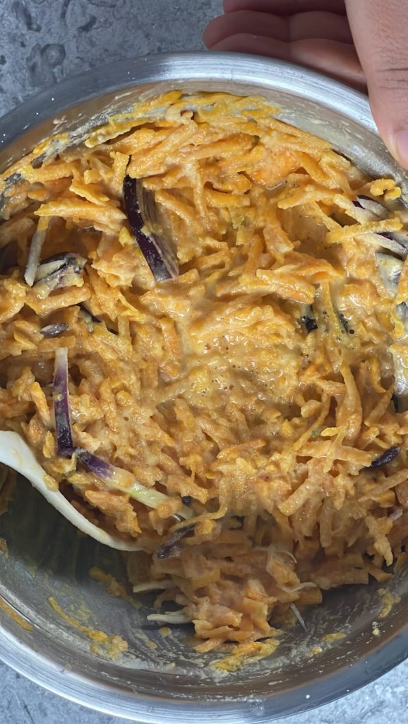 Zubereitet mit Kichererbsenmehl, Delica-Kürbis und roten Zwiebeln, ist es eine eierfreie Version der klassischen Frittata, perfekt für ein gesundes Mittagessen oder ein schnelles Abendessen. Das Kichererbsenmehl verleiht Struktur und einen leicht rustikalen Geschmack, während der Kürbis mit seiner Süße einen köstlichen Ausgleich zur aromatischen Note der Zwiebel schafft.