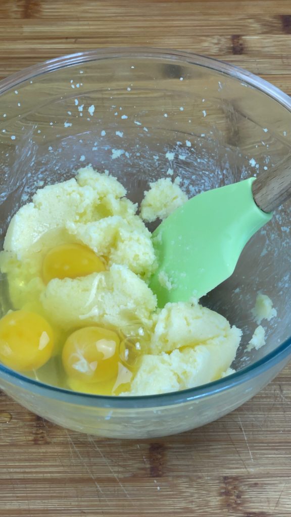 Nachdem du ihn eingearbeitet hast, füge auch das Mandelmehl hinzu.