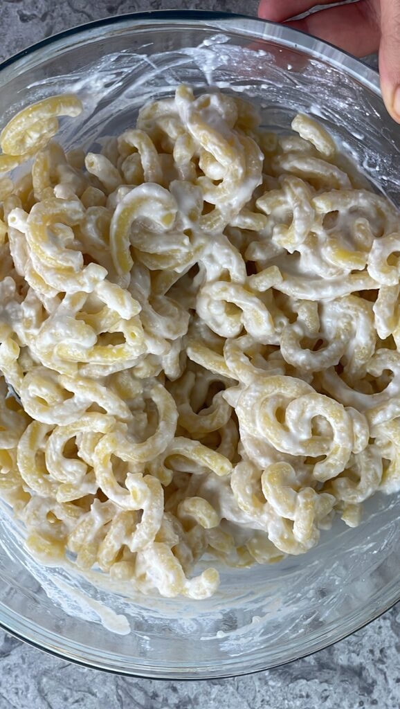 Mische, bis die Pasta gleichmäßig bedeckt ist.