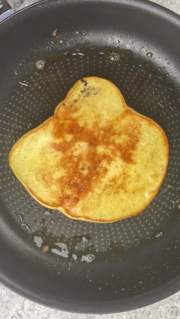 Die Pfannkuchen mit einem Spatel umdrehen und weitere zwei Minuten kochen.