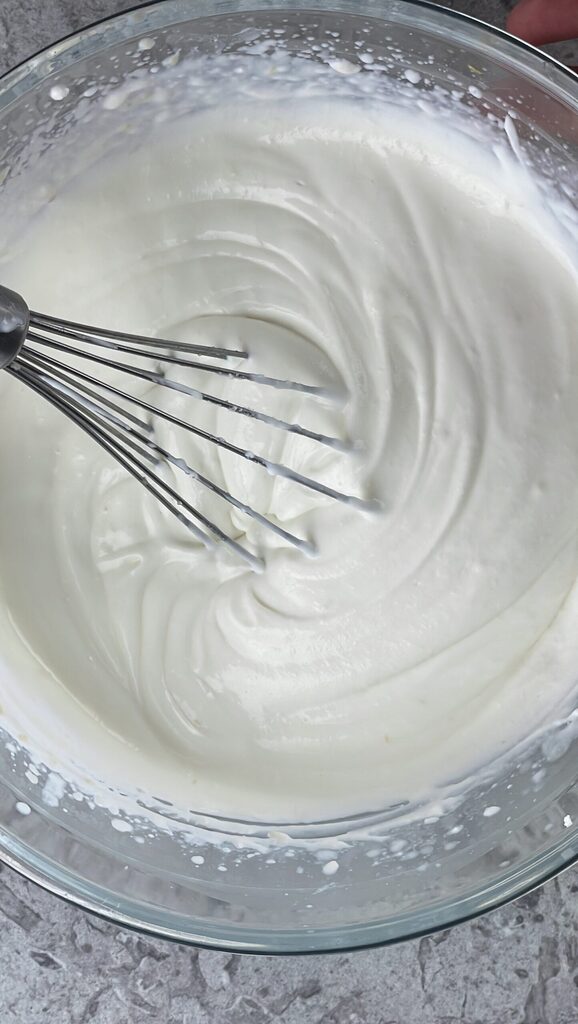 Schlage die Mischung mit dem Schneebesen, bis eine Creme entsteht.