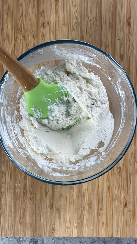 Mische den Teig mit einem Spatel, wobei darauf zu achten ist, dass keine Klumpen entstehen.
