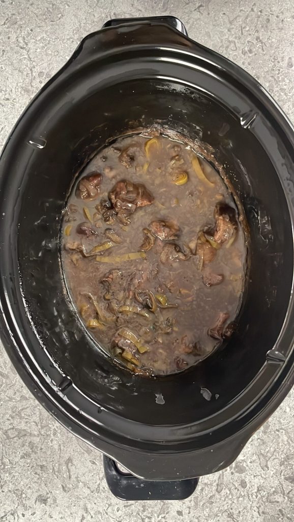 • Löse einen Esslöffel Maisstärke im Wasser auf und gib es zum Rest der Zutaten in den Slow Cooker.
