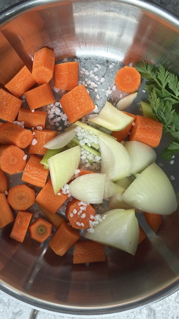 Gib alles in einen Topf und füge eine Prise grobes Salz hinzu.