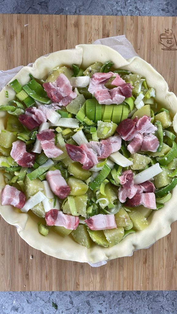 Rezept der rustikalen Torte mit Lauch und Kartoffeln