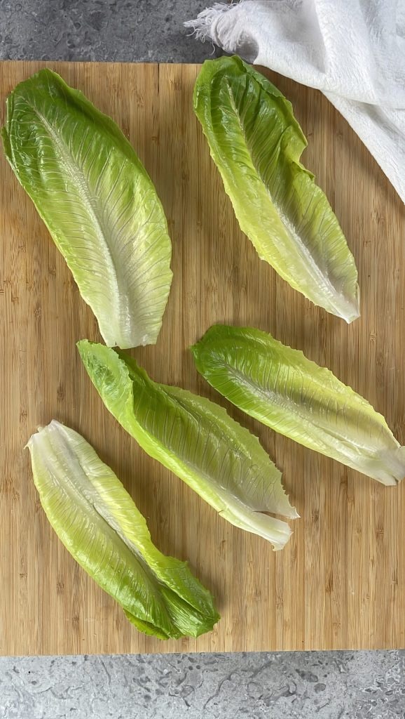 Römersalat ist ideal, da er lange, feste und knackige Blätter hat. Alternativ kannst du Eisbergsalat oder Endiviensalat verwenden, die perfekt für die „Boot“-Form sind.