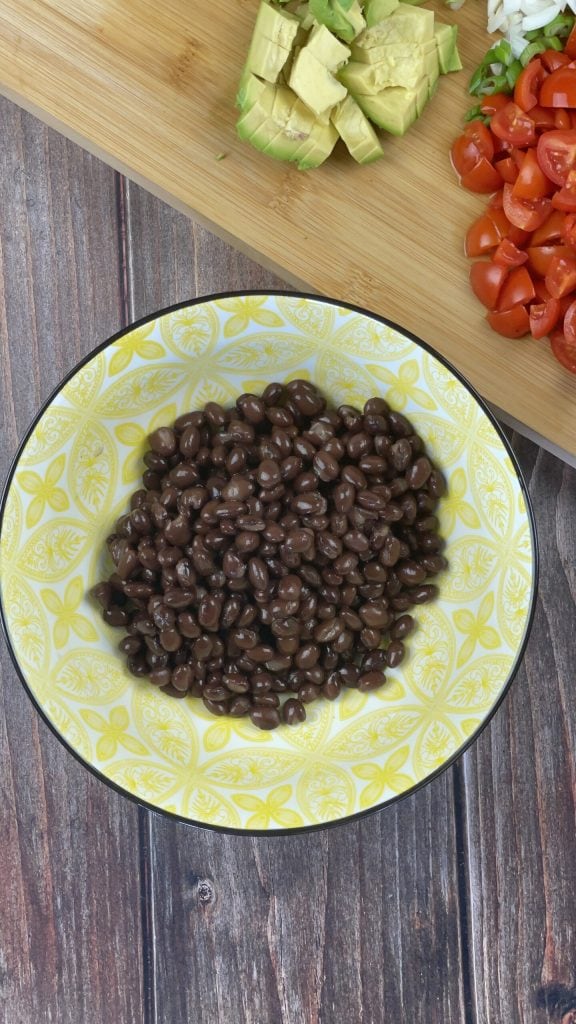 Schwarze Bohnen und Avocado Salat, ein frisches, nahrhaftes und leckeres Gericht, perfekt für ein schnelles Mittagessen, ein Sommerpicknick oder ein leichtes Abendessen.