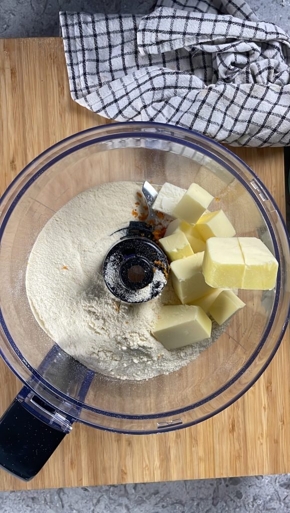 Beginne die Zubereitung der Scones mit Clementinen, indem du im Glas der Küchenmaschine Mehl 00, Zucker, Salz, Backpulver und die Schale einer unbehandelten Clementine gibst.