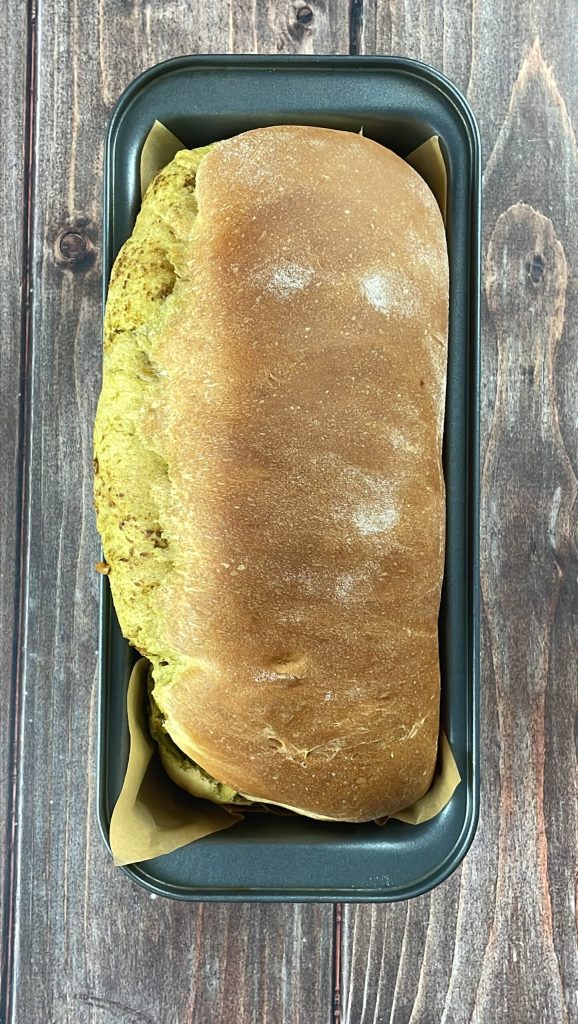 Weich und aromatisch, kombiniert es die Weichheit des Teigs mit dem kräftigen Geschmack des Pestos und der knusprigen Note der Walnüsse. Es ist ein vielseitiges Brot, ideal zur Begleitung von Fleisch- oder Gemüsegerichten, aber auch hervorragend alleine zu genießen, vielleicht leicht getoastet.