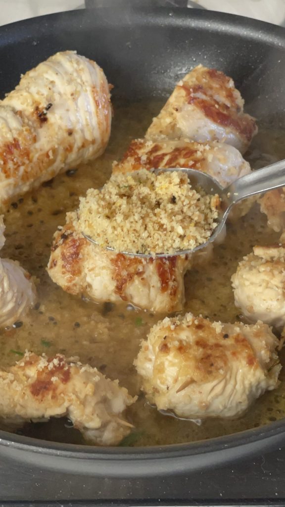 Serviere die Zitronen-Truthahn-Rouladen sofort heiß.