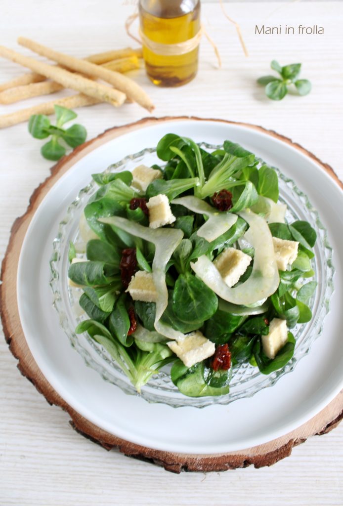 Hier ist der Fenchel- und Feldsalat fertig. Guten Appetit!