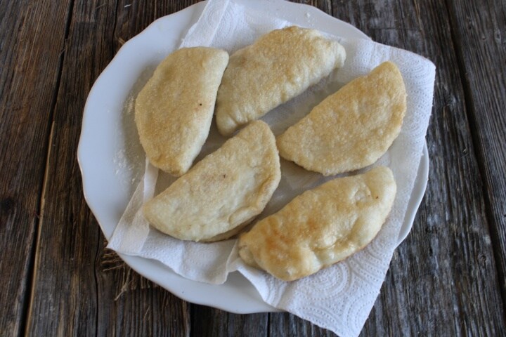Die Zubereitung ist sehr einfach und schnell. Tatsächlich handelt es sich um einen Hefeteig, den Pizzateig, der bis zur Verdopplung gehen gelassen wird und dann in Rauten (oder in meinem Fall in Kreise, die gefüllt werden) geschnitten und frittiert wird.