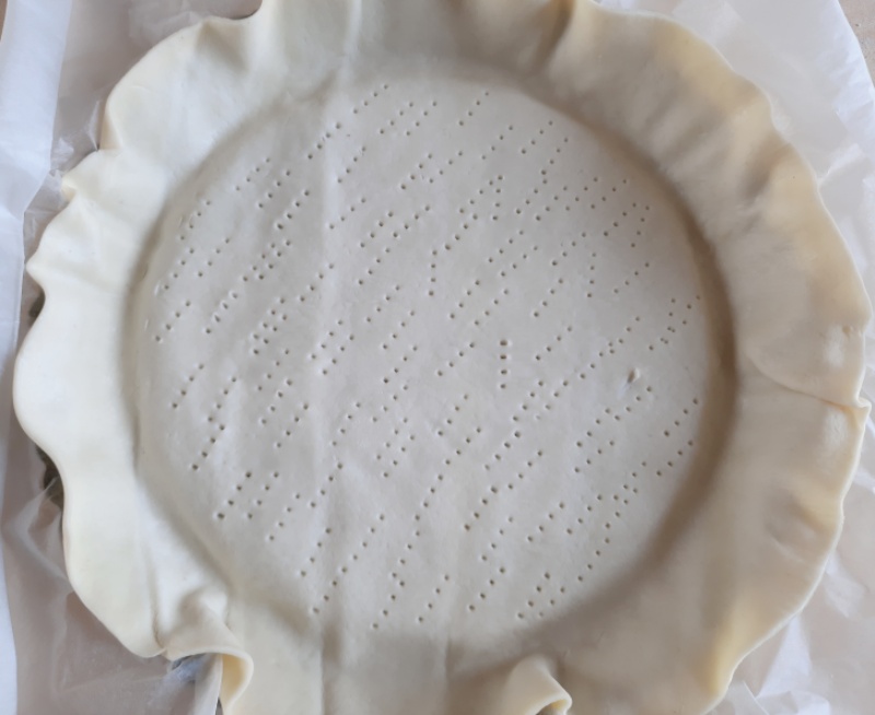 Wenn ihr diese praktische Backform verwendet, ist es nicht nötig, den Teig mit Backpapier in die Form zu legen. Ihr müsst nur den äußeren Ring abnehmen und könnt die Tarte nach dem Backen leicht herausheben. Sie ist praktisch, weil der Boden herausnehmbar ist; außerdem ist sie antihaftbeschichtet und lässt sich schnell reinigen.