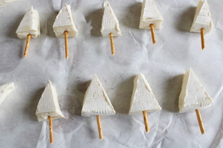 Sie können die Käse-Bäumchen im Voraus zubereiten und im Kühlschrank aufbewahren. Einzige Empfehlung: Setzen Sie die Salzstangen erst im letzten Moment ein. Wenn Sie sie zusammen mit dem Käse in den Kühlschrank stellen, werden sie weich.