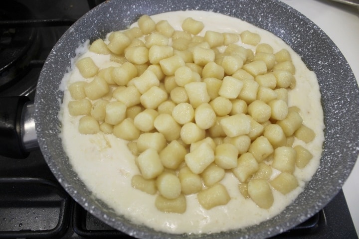 Die Kartoffelklöße sind eine Variante der Gnocchi, kleiner und von unregelmäßiger Form. Sie werden aus gekochten Kartoffeln, Mehl und Eiern hergestellt und in kochendem Wasser gegart, bis sie an die Oberfläche kommen. Wenn Sie keine Zeit haben, können Sie problemlos die bereits fertigen Klöße verwenden, wie ich es gemacht habe.