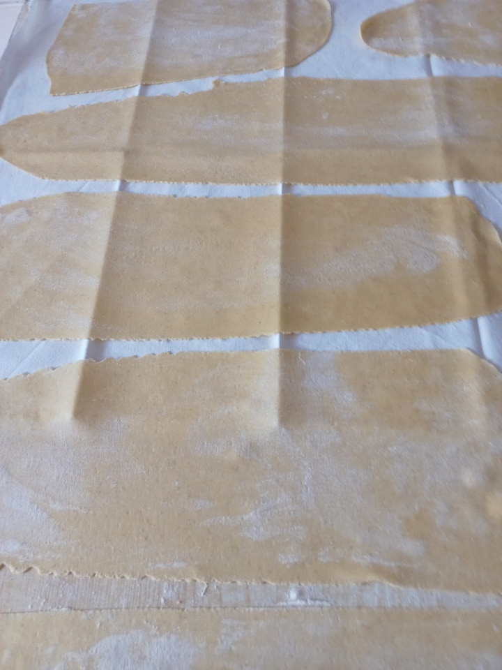 Ich habe frische Eierteiglasagne verwendet, aber aus Praktikabilität können Sie auch trockene Lasagne verwenden: Normalerweise lasse ich sie vorher kurz aufkochen, Sie können sie aber auch so verwenden, indem Sie die Menge der Béchamel etwas erhöhen.