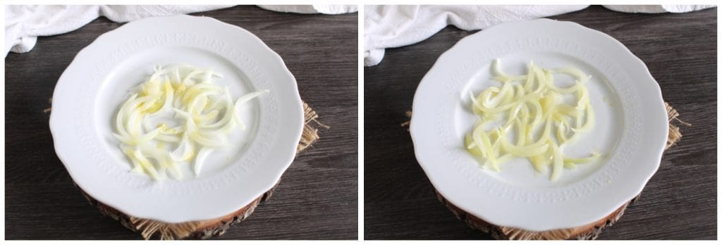 • Schneller Tipp: Wenn ich in Eile bin, schneide ich die Zwiebel in Scheiben, lege sie in einen Teller mit etwas Öl, mische schnell und lasse sie in 3 Durchgängen in der Mikrowelle garen.