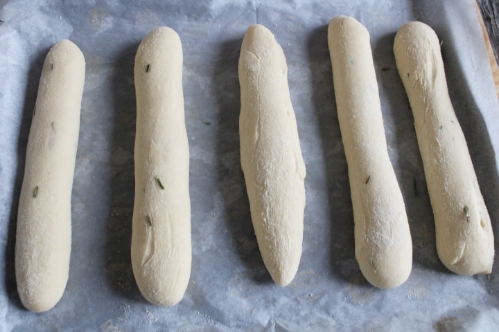 Die Rosmarin-Brotstangen sind super weiche und leckere Brötchen, aromatisiert mit Rosmarin, perfekt zum Servieren mit Aufschnitt und Wurstwaren oder zum einfachen Genießen, Scheibe für Scheibe.