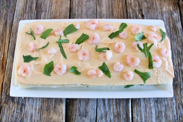 Die Sandwich Torte, auch Smörgåstårta genannt, stammt ursprünglich aus Finnland und besteht aus mehreren Schichten Brot, gefüllt mit Frischkäse, Aufschnitt, Fisch, Gemüse, und wird so zusammengebaut, dass sie einem Kuchen ähnelt. Wirklich sehr beeindruckend.