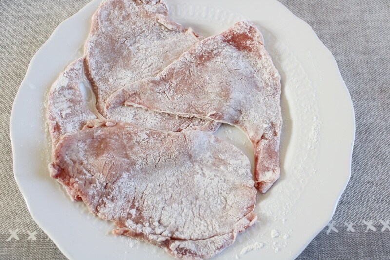 In derselben Pfanne, in der Sie die Pilze gegart haben, fügen Sie das Öl und ein Stück Butter hinzu. Mehlieren Sie die Fleischscheiben und schütteln Sie sie leicht, um überschüssiges Mehl zu entfernen, damit sie gleichmäßig und nicht verbrannt bräunen