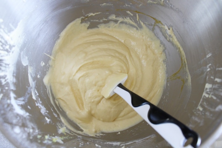 Nach und nach den Mascarpone (oder den griechischen Joghurt, wenn Sie möchten) zur Eier-Zucker-Mischung geben, mit dem Schneebesen gut vermengen und dabei den Saft einer halben Zitrone (gefiltert) und das Öl nach und nach hinzufügen.