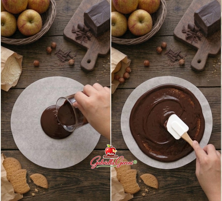 Schmilzt die Schokolade über dem Wasserbad (oder kurz in der Mikrowelle) und verstreicht sie dann auf dem Papierkreis.