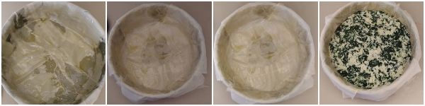 Noch einmal eine Schicht und so weiter, bis ihr mindestens 3 Schichten habt (je mehr Blätter ihr verwendet, desto knuspriger und schmackhafter wird die Torta Pasqualina, ich habe die ganze Packung verwendet).