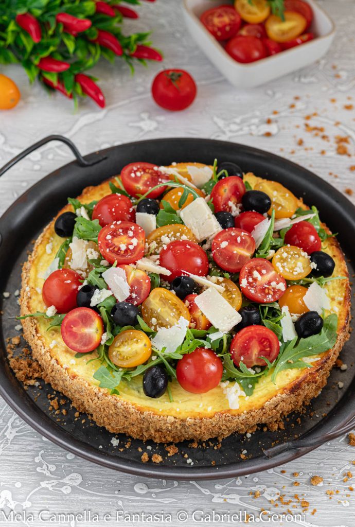 Heute schlage ich euch einen wunderschönen und leckeren pikanten Käsekuchen mit Tomaten, Oliven, Rucola und Parmesan vor. Ein schöner herzhafter Kuchen mit frischen und natürlichen Zutaten! Auch für Vegetarier geeignet. Habt ihr schon einmal einen pikanten Käsekuchen probiert? Er ist köstlich! Perfekt als Vorspeise, für ein raffiniertes Abendessen oder als Hauptgericht. Ich liebe pikante Käsekuchen, sie sind sehr einfach zuzubereiten und wirklich beeindruckend. Der heutige Vorschlag wird im Ofen gebacken und ist ohne Gelatine. Er hat eine Basis aus Crackern und Butter, typisch für Käsekuchen. Gefüllt mit einer Creme aus Ricotta und griechischem Joghurt. Schließlich dekoriert mit Tomaten, Rucola, Parmesan und Oliven. Bevorzugst du Käsekuchen ohne Backen? Probier die Version mit Gorgonzola, Feigen und Prosciutto Crudo. Oder mit Mortadella und Pistazien, frisch und zart. Lass uns das Verfahren mit den Schritt-für-Schritt-Fotos durchgehen.