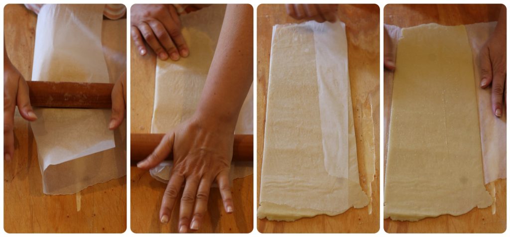 Den überschüssigen Teig beiseite legen, um eine weitere Rolle zu formen.