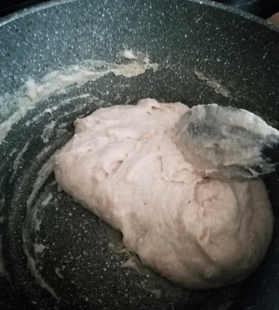 Während des Kochens mit einem Spatel rühren und nach etwa 10 Minuten, wenn sich die Masse vom Topfrand löst, den Herd ausschalten.