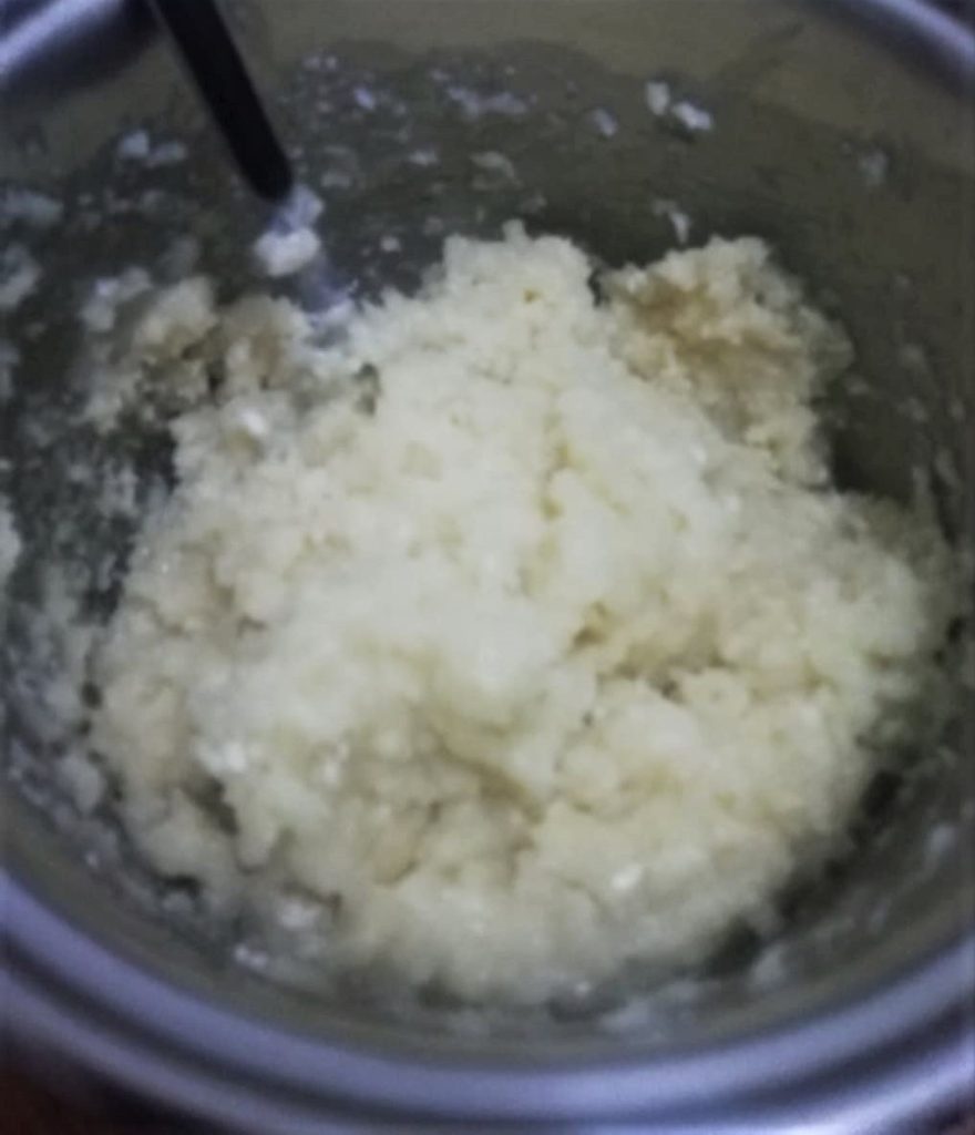 Gießen Sie die Teigmasse auf die Arbeitsfläche, leicht mit einem Hauch Öl gefettet, damit sie nicht klebt. Verbreiten Sie sie etwas und lassen Sie sie abkühlen, bevor Sie den Teig weiterverarbeiten, der glatt und homogen sein soll.