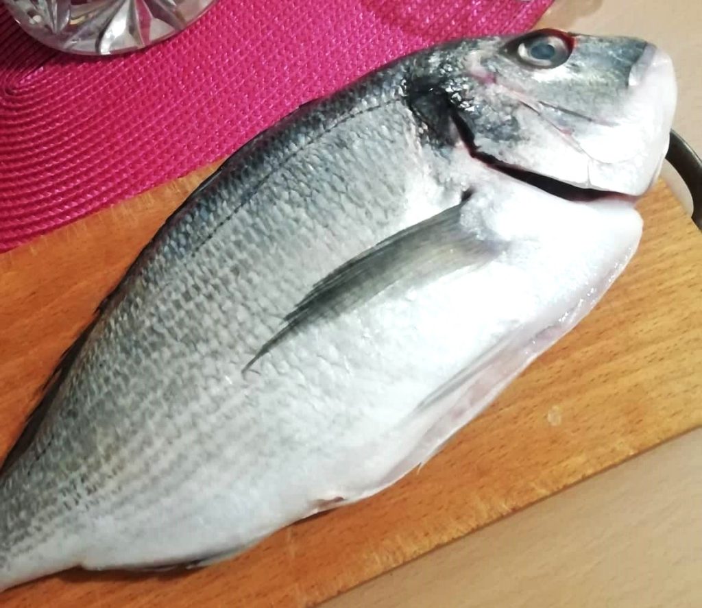 Entfernen Sie die Innereien und schuppen Sie die Dorade, dann waschen Sie sie unter fließendem Wasser. Tupfen Sie sie mit Küchenpapier ab und trocknen Sie sie.