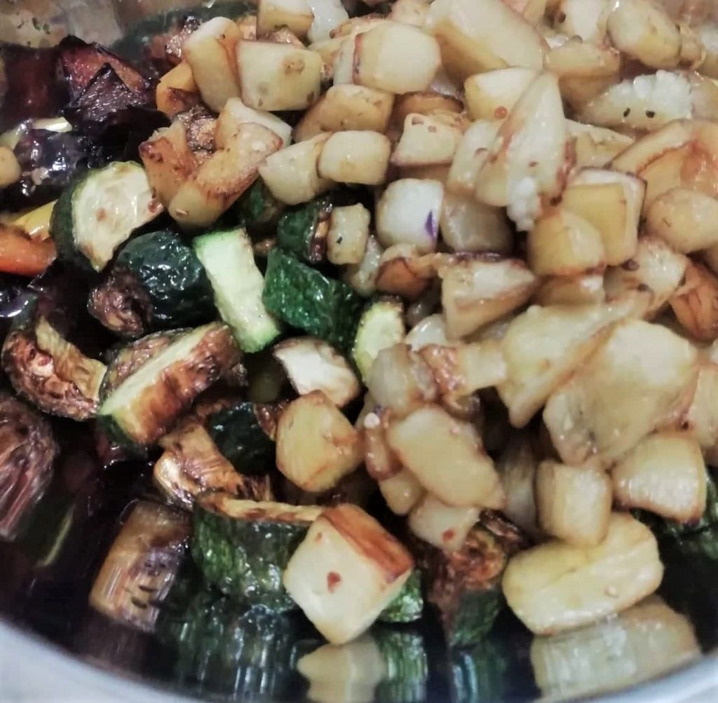 Die Auberginen-Caponata ist fertig. Lassen Sie sie etwas abkühlen, bevor Sie sie warm servieren, oder lassen Sie sie vollständig abkühlen, wenn Sie sie kalt servieren möchten.