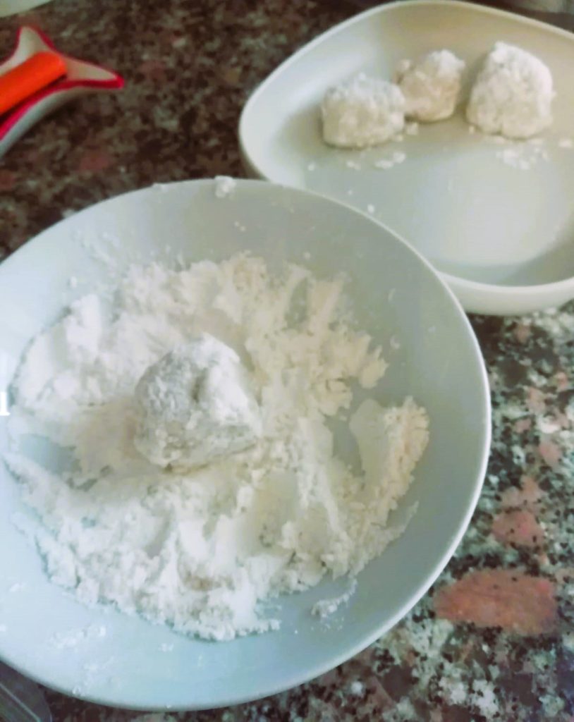 Mischen Sie in einer kleinen Schüssel das Mehl, die Maisstärke, eine Prise Salz und eine Prise weißen Pfeffer, tauchen Sie die Tofuwürfel hinein und bedecken Sie sie gleichmäßig und dünn von allen Seiten, dann entfernen Sie vorsichtig das überschüssige Mehl.