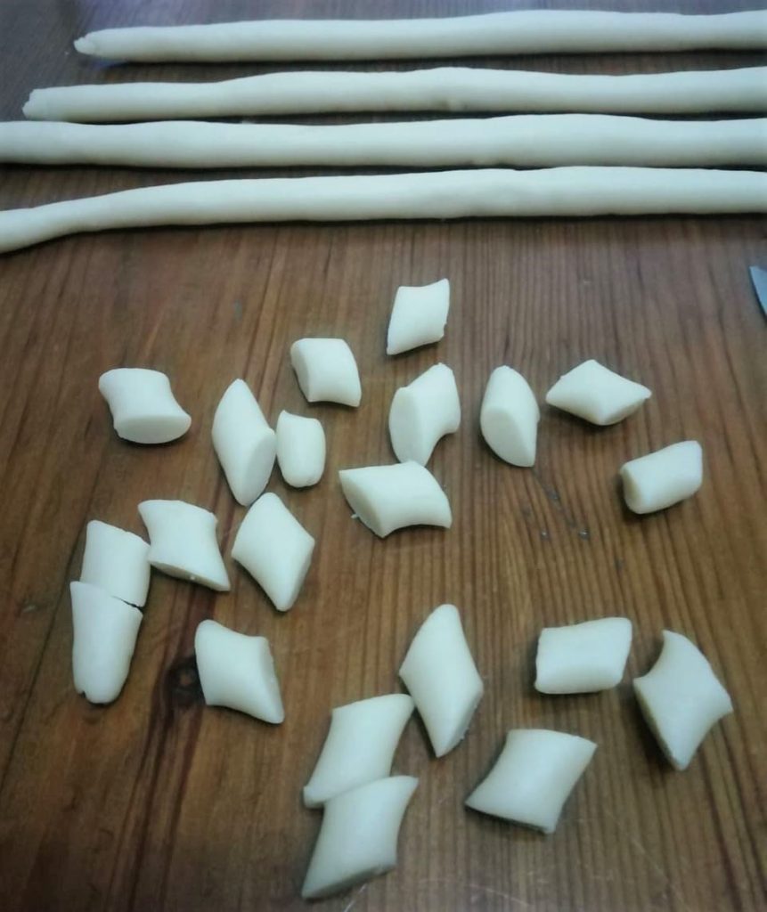 Schneiden Sie dann mit einem scharfen Messer die Gnocchi in die gewünschte Größe.